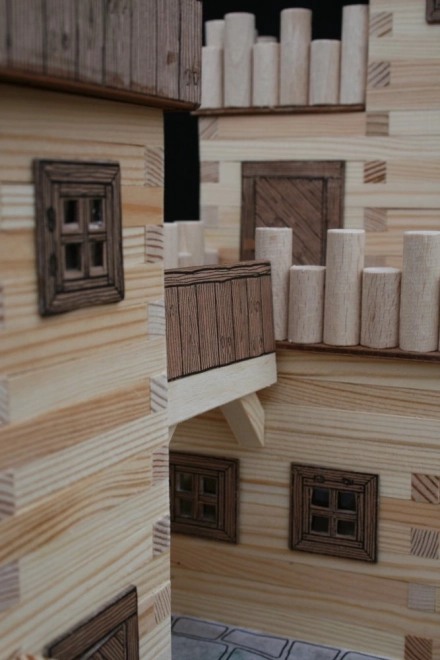 Mediniai tašeliai 9×9 mm ir popieriniai priedai (langai, durys, stogai) užtikrina tikrovišką viduramžių architektūros vaizdą.