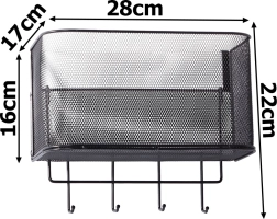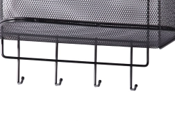 Ši metalinė pakabinama lentynėlė yra ne tik praktiška, bet ir stilinga. Ji talpi ir leidžia laikyti įvairius daiktus – nuo virtuvės aksesuarų iki higienos priemonių. 4 papildomus kabliukus galite naudoti raktams, rankšluosčiams ar rankinėms pakabinti.