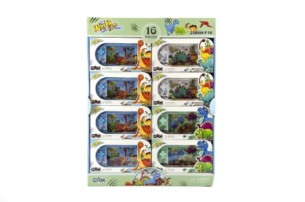 Smagus kišeninis vandens žaidimas su dinozaurais pradžiugins ir mažuosius, ir suaugusiuosius. Tereikia spausti mygtukus, o vandens srovė suks spalvotus žiedus – tikslas yra juos užmauti ant kaištelių. Lavina kantrybę, smulkiąją motoriką ir akies–ranks koordinaciją. Kompaktiškas 18 cm dydis – idealu kelionėms ir į mokyklinę kuprinę.