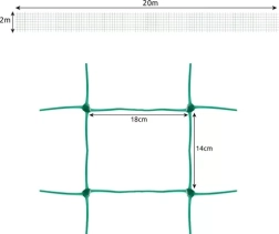 Lengvas montavimas ir universalus naudojimas. Tinklą galima montuoti horizontaliai arba vertikaliai ant kuolų, rėmų, stulpų ar pergolių. Didelės akutės 14 × 18 cm leidžia patogiai laistyti, rišti ir karpyti. PP medžiaga su sustiprintais mazgais užtikrina stabilumą, atsparumą tempimui ir mechaniniams pažeidimams.