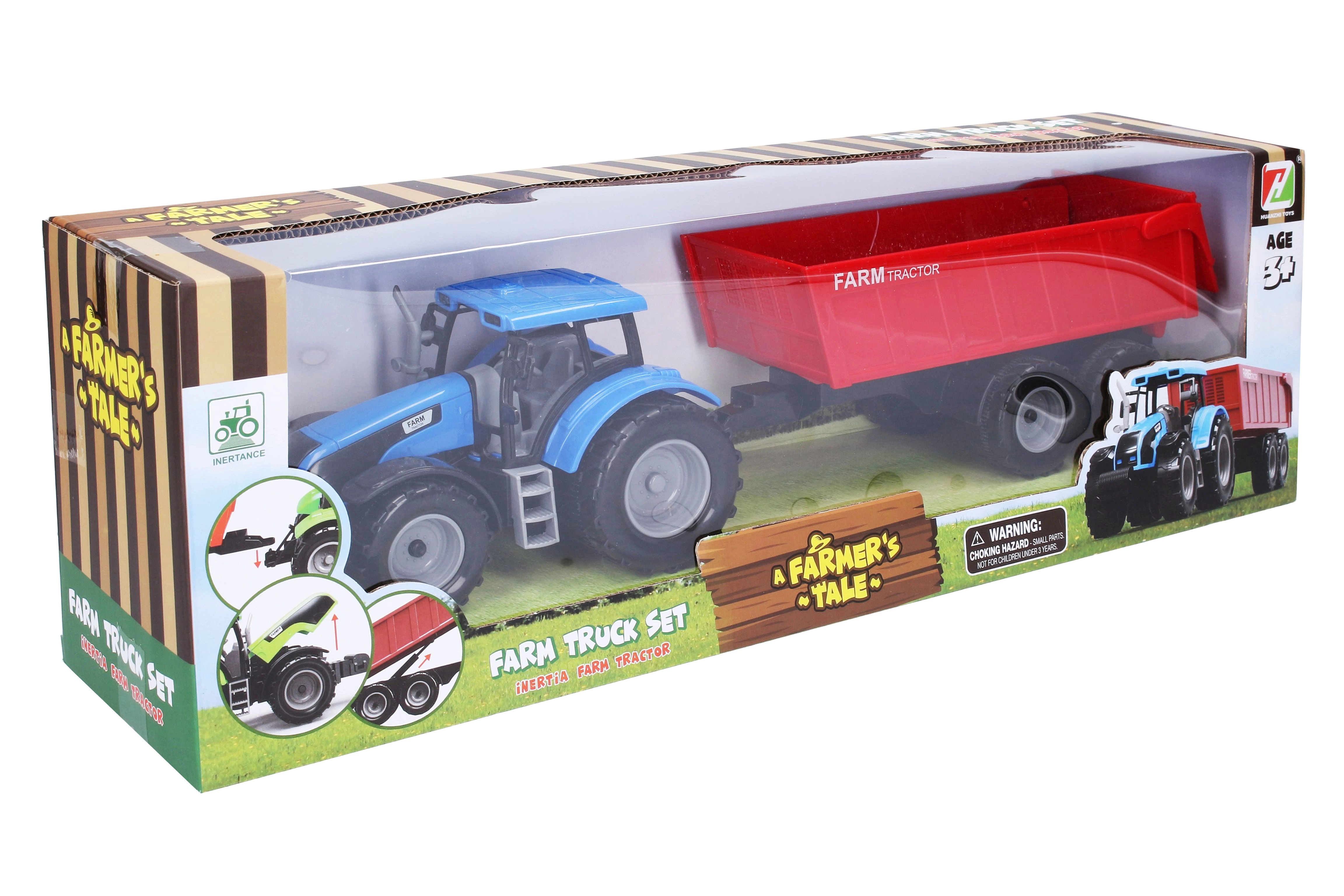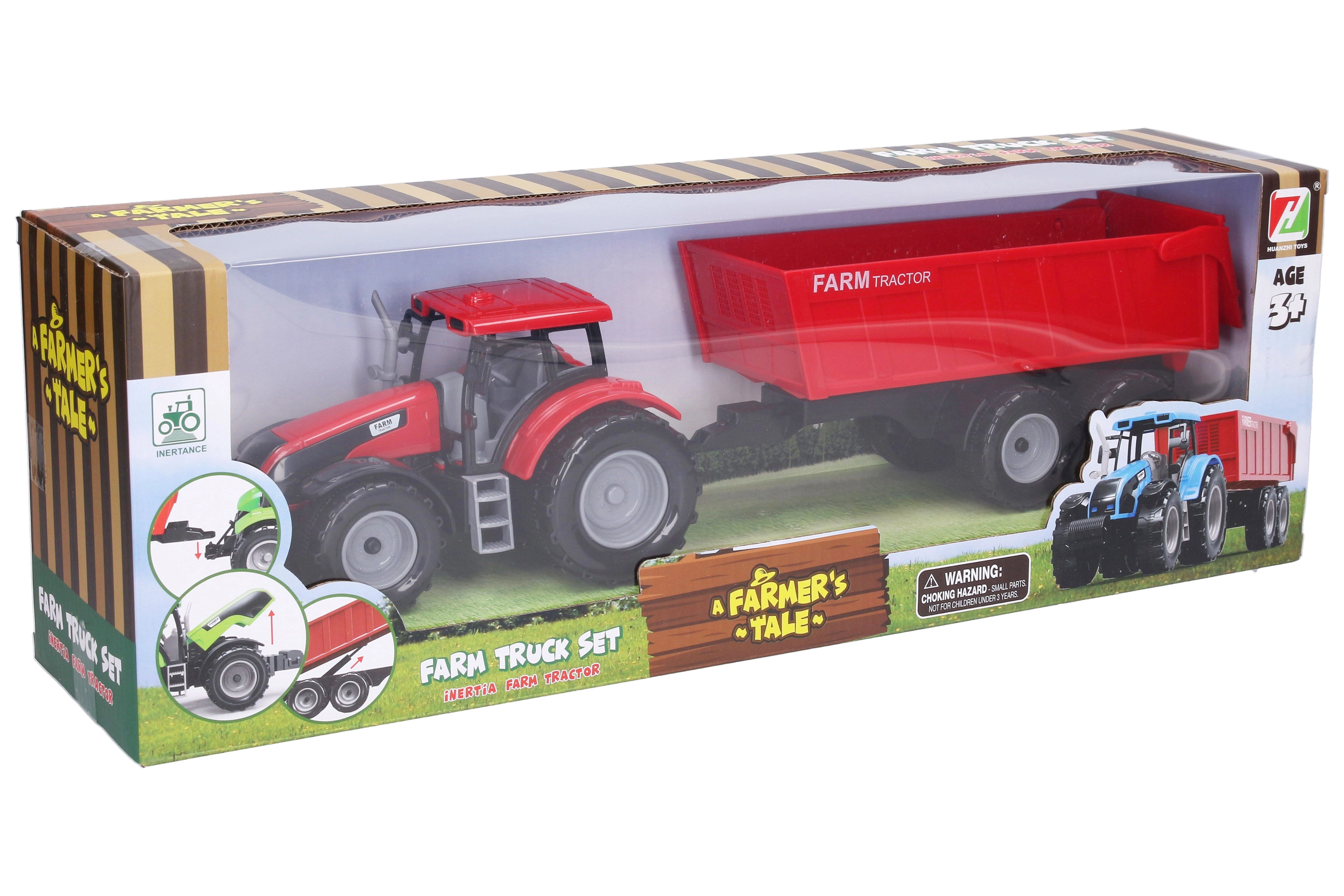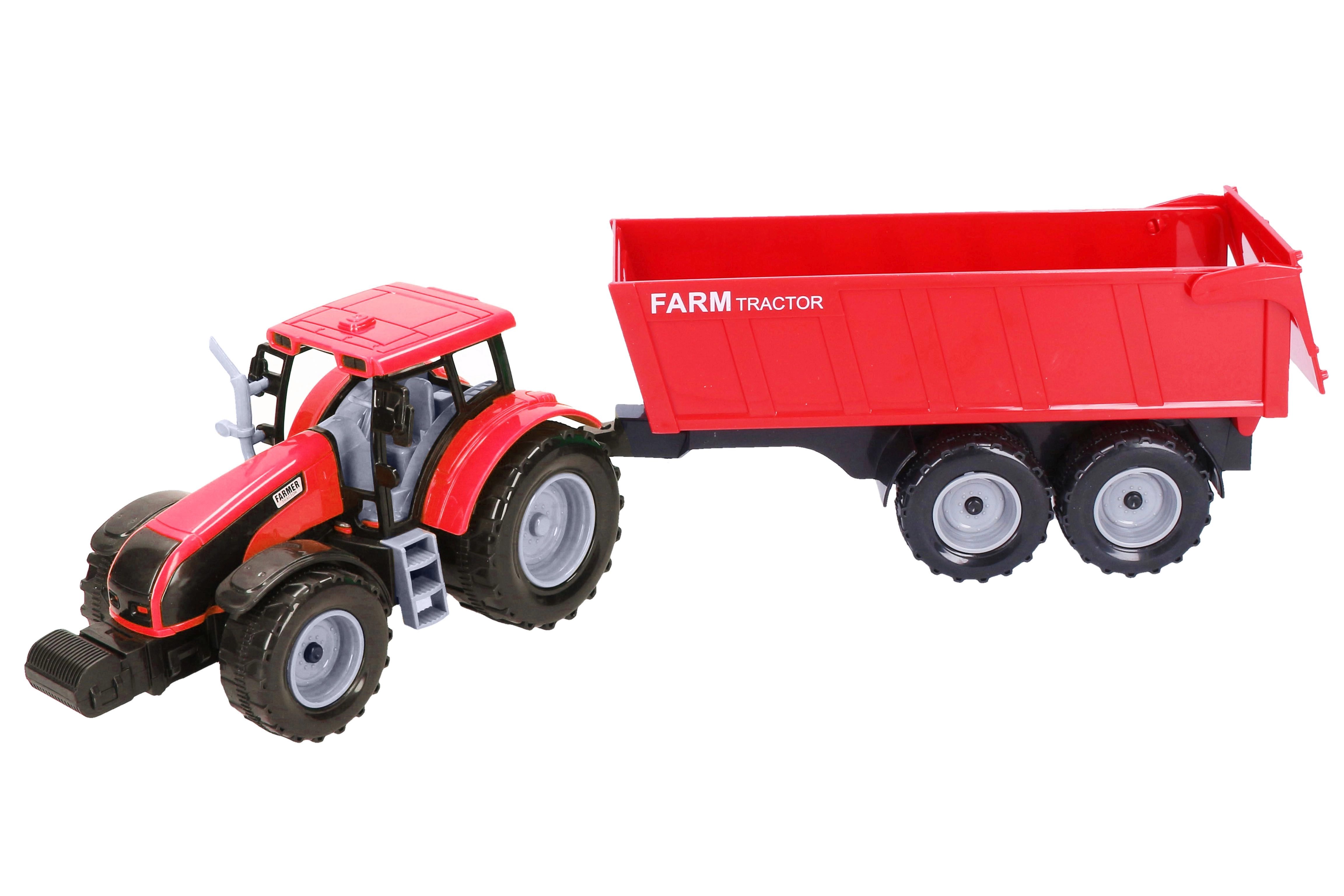 Galingas traktorius su priekaba, 42 cm ilgio, idealiai tinka mažiesiems ūkininkams. Inercinė pavara ir atsidaranti galinė priekabos dalis suteikia džiaugsmo ir realistiško žaidimo patirtį.