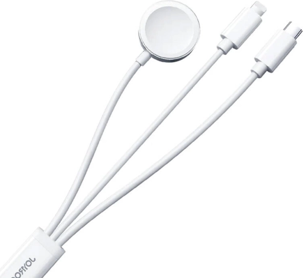 Jonroom įkrovimo laidas turi Apple Watch, Lightning ir USB-C jungtis, todėl galima įkrauti platų įrenginių spektrą.