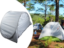 Palapinė lengva, paprastai pernešama ir sulanksčius užima minimaliai vietos. Uždarymas su užtrauktuku ir galimybė įtvirtinti kuoliukais didina stabilumą ir komfortą. Matmenys 195 × 120 × 95 cm idealiai tinka 1–2 asmenims – tiek paplūdimyje, tiek sode, stovyklaujant ar kaip vaikų žaidimų kampelis.