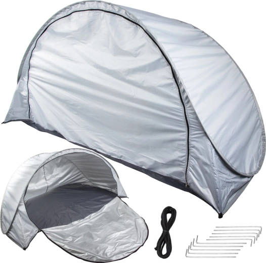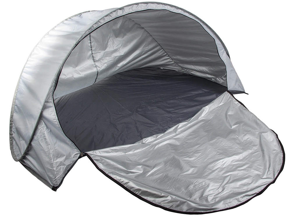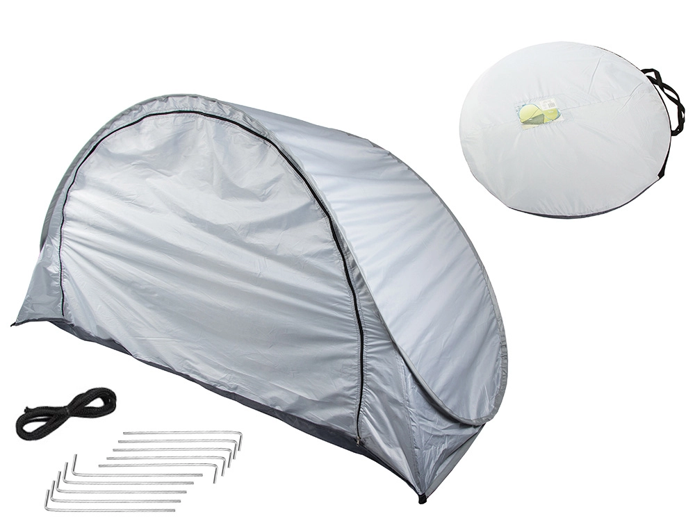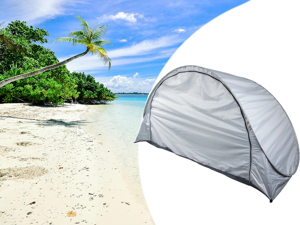 Savaime išsiskleidžianti paplūdimio palapinė elegantiškos pilkos spalvos suteiks malonų pavėsį ir privatumą karštomis dienomis. Dėl išmanaus mechanizmo ji išsiskleidžia beveik akimirksniu, tad daugiau laiko galėsite skirti poilsiui. Medžiaga su UV apsauga padeda sumažinti saulės spinduliuotės poveikį, o aerodinaminė forma geriau atspari vėjui.