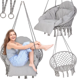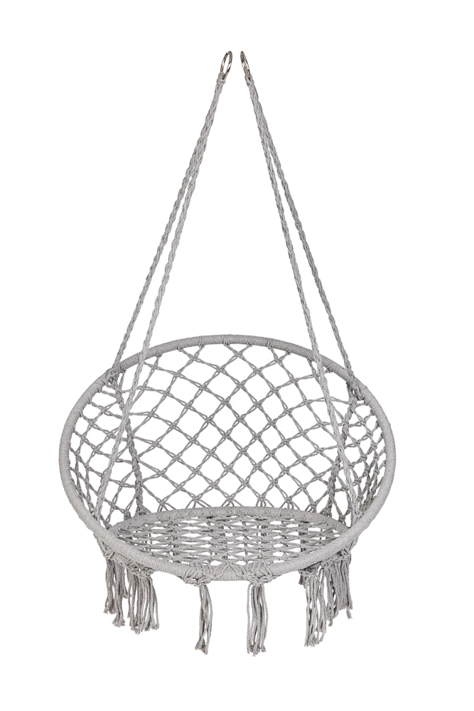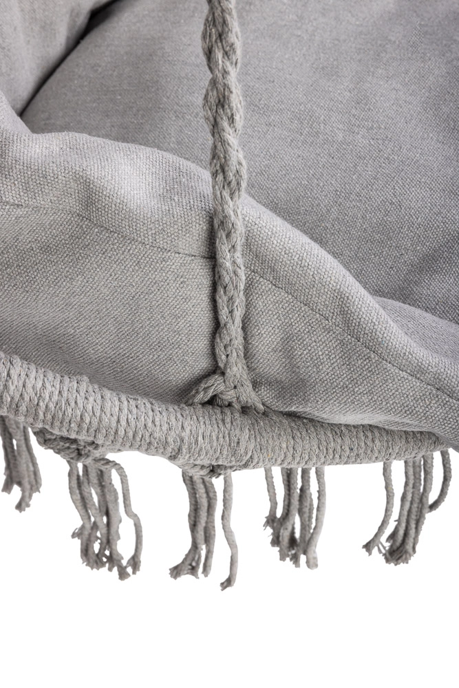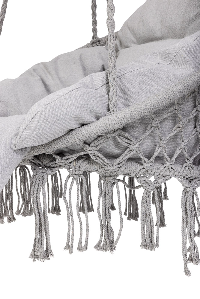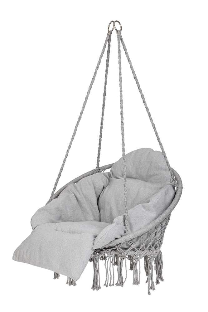 Sukurkite jaukias akimirkas namuose ir sode su stilinga pakabinama lizdo tipo kėde. Jos erdvi apvali forma, minkšta pagalvė ir iki 150 kg keliamoji galia užtikrina maksimalų komfortą poilsiui. Universali pilka spalva dera tiek interjere, tiek eksterjere, o tvirti medvilniniai virvės su metaliniu rėmu garantuoja stabilumą ir ilgaamžiškumą.