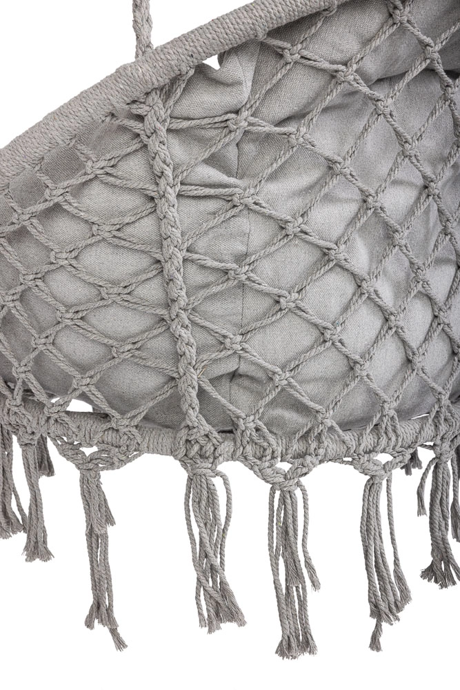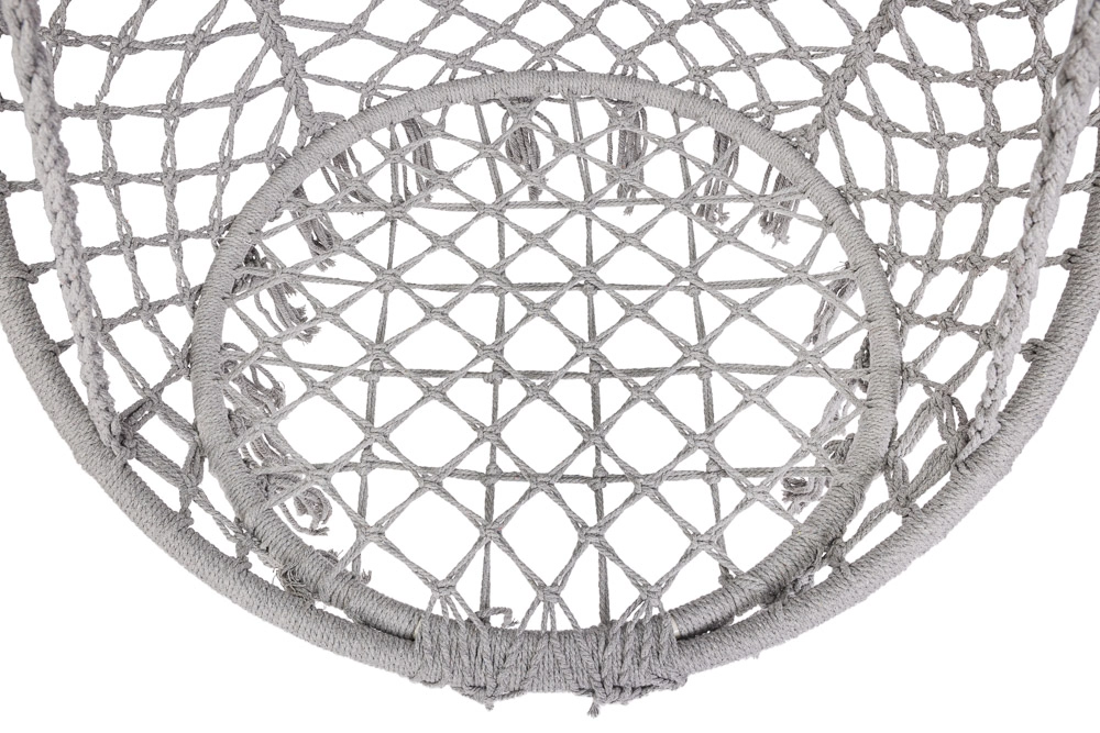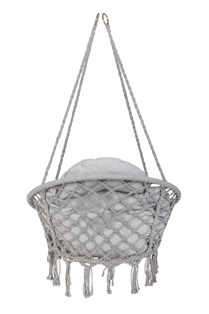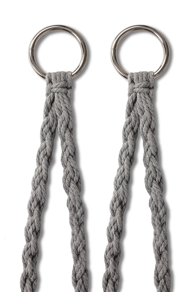 Metalinė rėmo konstrukcija ir stiprios medvilninės virvės su pakabinimo žiedais užtikrina stabilumą ir saugų naudojimą iki 150 kg.