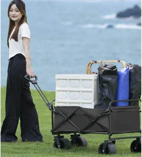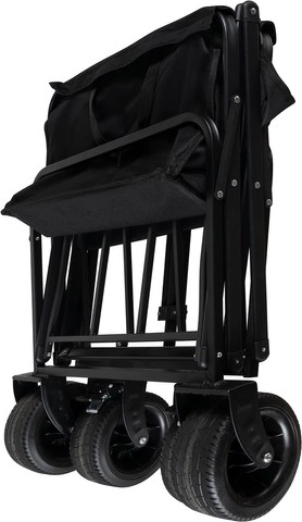 Universalus sulankstomas vežimėlis, kurio keliamoji galia iki 100 kg ir talpa 75 l, palengvina įrangos pervežimą į paplūdimį, sodą ar iškylas. Jis turi plačius 360° pasisukančius ratus su stabdžiu, užtikrinančius stabilumą smėlyje ir žvyre, ergonomišką ištraukiamą rankeną su fiksatoriumi ir patvarią 600D Oxford audinio įklotą su kišenėmis gėrimams ir smulkmenoms. Greitai susilanksto iki kompaktiškų matmenų ir lengvai telpa į automobilio bagažinę.