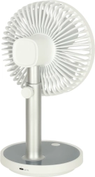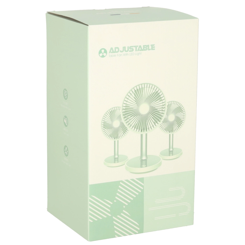Mėgaukitės maloniu vėsumu karštomis dienomis. Šis baltas stalinio ventiliatorius sujungia minimalistinį dizainą ir praktiškas funkcijas: keturi oro srauto režimai nuo švelnaus vėjelio iki stipresnės galios, tylus veikimas, tinkamas miegamajam ir biurui, bei LED pagrindo apšvietimas švelniai nakties šviesai.
