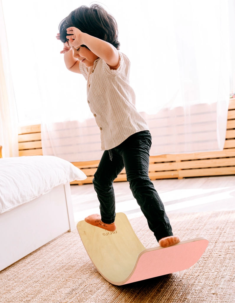 Lentos išlinkimas skatina vaikus natūraliai judėti, gerina stabilumą, koordinaciją ir susikaupimą žaidžiant.