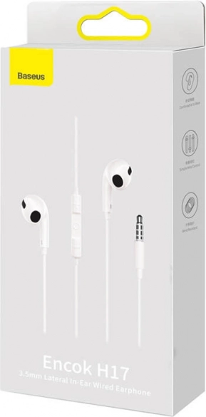 BASEUS Encok H17 – lengvos ir patogios laidinės ausinės su Half‑In‑Ear konstrukcija, kurios maloniai laikosi ausyje net ir ilgiau nešiojant. Dideli 14 mm garsiakalbiai su polimerine membrana užtikrina detalų stereo garsą su ryškiu bosu ir subalansuotais vidutiniais bei aukštais dažniais. Dėl universalaus 3,5 mm kištuko lengvai prijungsite prie telefono, nešiojamojo kompiuterio, žaidimų valdiklio ar kompiuterio.