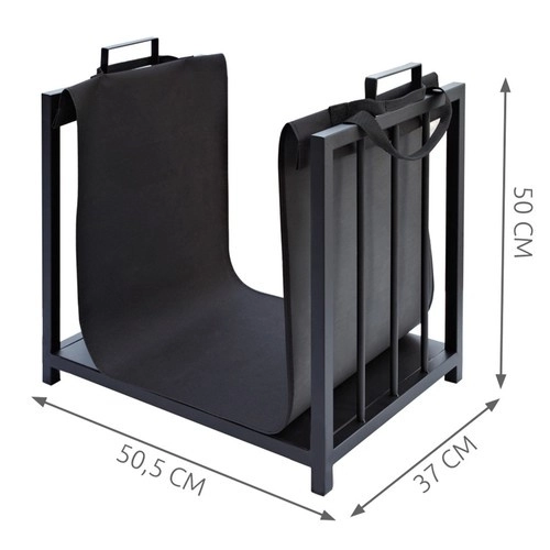Išimamas tekstilinis maišas ir tvirtas rėmas palengvina malkų parsinešimą iš malkinės ir jų laikymą tiesiai prie židinio. Taupo laiką ir palaiko švarą namuose.