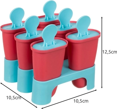 Iš karto paruošite iki 6 ledų po 80 ml. Pagrindas tvirtai laiko formeles vertikaliai tiek pildant, tiek šaldant, todėl turinys neišsilieja ir išvengsite netvarkos.