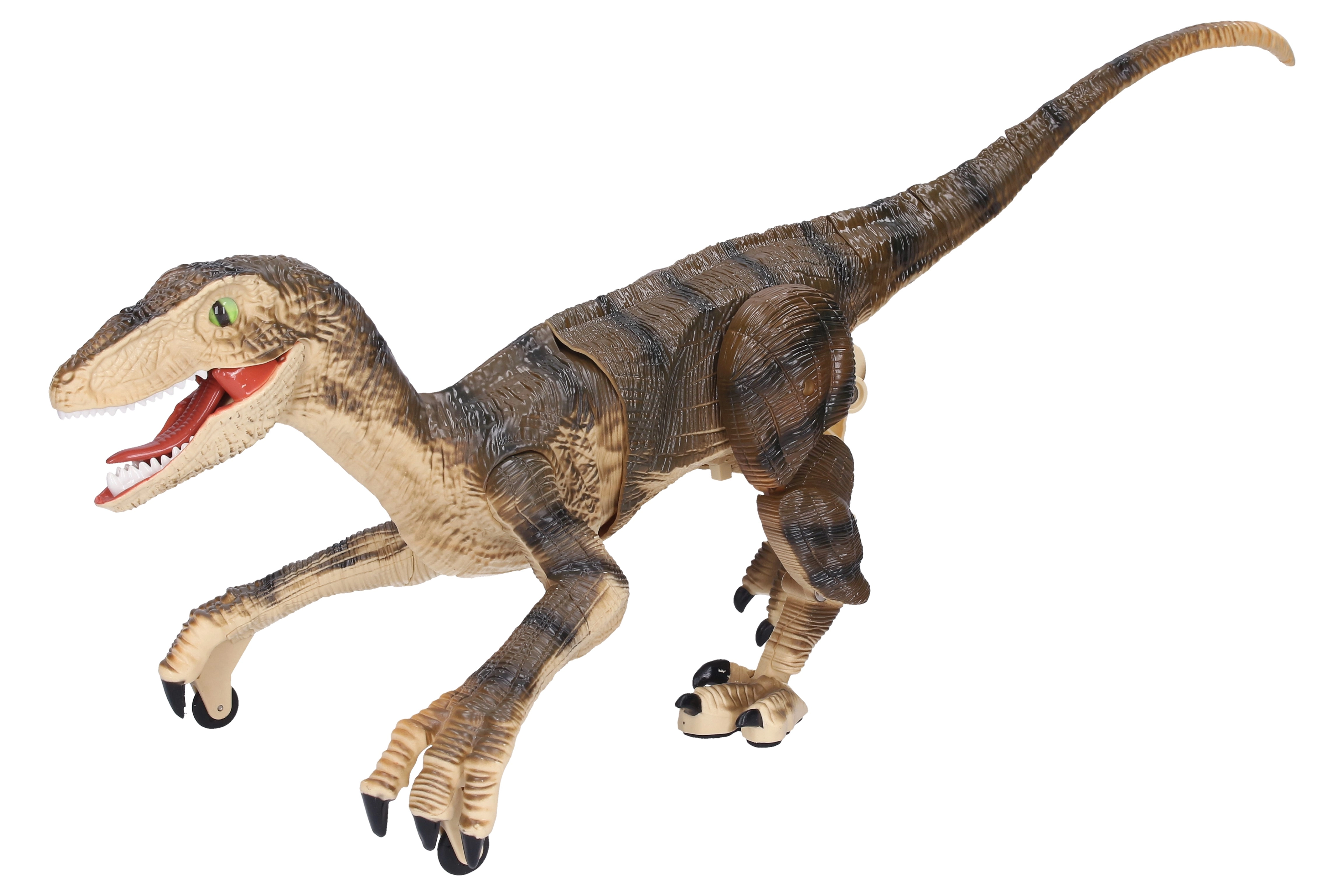 Šis detaliai sukurtas raptorius paklūsta tavo komandai per nuotolinį valdymo pultą. Jis juda natūraliai kaip tikras plėšrūnas, o šviesos efektai suteikia žaidimui dar daugiau intensyvumo – tamsoje jis „apšviečia grobį“ ir papildo tai tipišku dinozauro riaumojimu.
