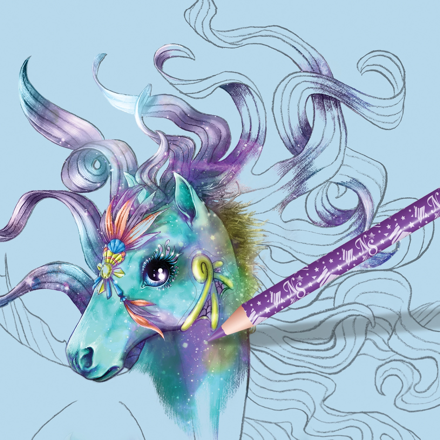 Pakuotėje rasite platų dailės priemonių ir aksesuarų pasirinkimą, su kuriais vaikai gali apvedžioti, spalvinti, piešti ir klijuoti. Aiškių žingsnis po žingsnio instrukcijų dėka jie greitai įsisavins naujas technikas ir sukurs gražių piešinių, įkvėptų magiško gyvūnų pasaulio.