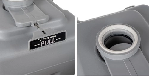Ieškote praktiško ir higieniško sprendimo kelionėms bei už civilizacijos ribų? Nešiojamas TRIZAND tualetas derina kompaktiškus matmenis, mažą svorį ir didelę talpyklų apimtį. Viršutinė dalis su 12 l vandens talpa ir rankine nuleidimo pompa užtikrina pakartotinį naudojimą be vandentiekio prieigos. Apatinė 20 l nuotekų talpa yra hermetiškai uždaroma ir turi didelę išleidimo angą su užsukamu dangteliu, kad būtų galima švariai ir greitai ištuštinti.