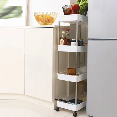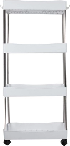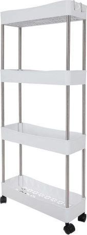 Mobilus lentynų vežimėlis RUHHY – universalus sprendimas vietai taupyti siauruose tarpuose ir įprastose namų zonose. Dėl modulinės konstrukcijos lengvai pritaikysite lentynų skaičių pagal poreikį ir naudosite jį vonioje kosmetikai bei valikliams, virtuvėje prieskoniams ir buteliams, darbo kambaryje dokumentams ar skalbykloje detergentams.