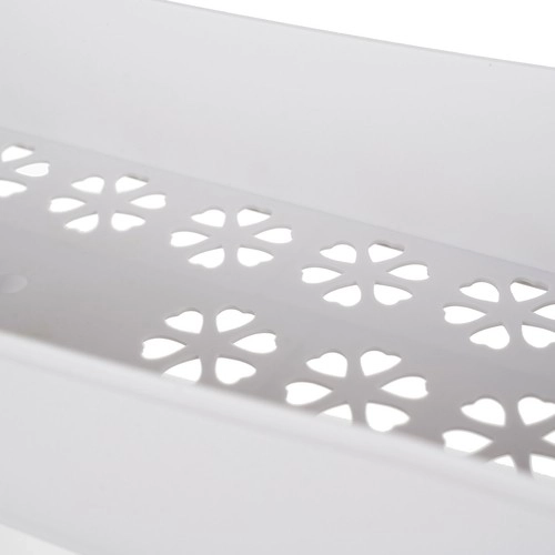 Perforuotas dugnas gerina oro cirkuliaciją ir drėgmės nutekėjimą. Šoniniai kabliukai suteiks vietos rankšluosčiams ir smulkiems priedams.
