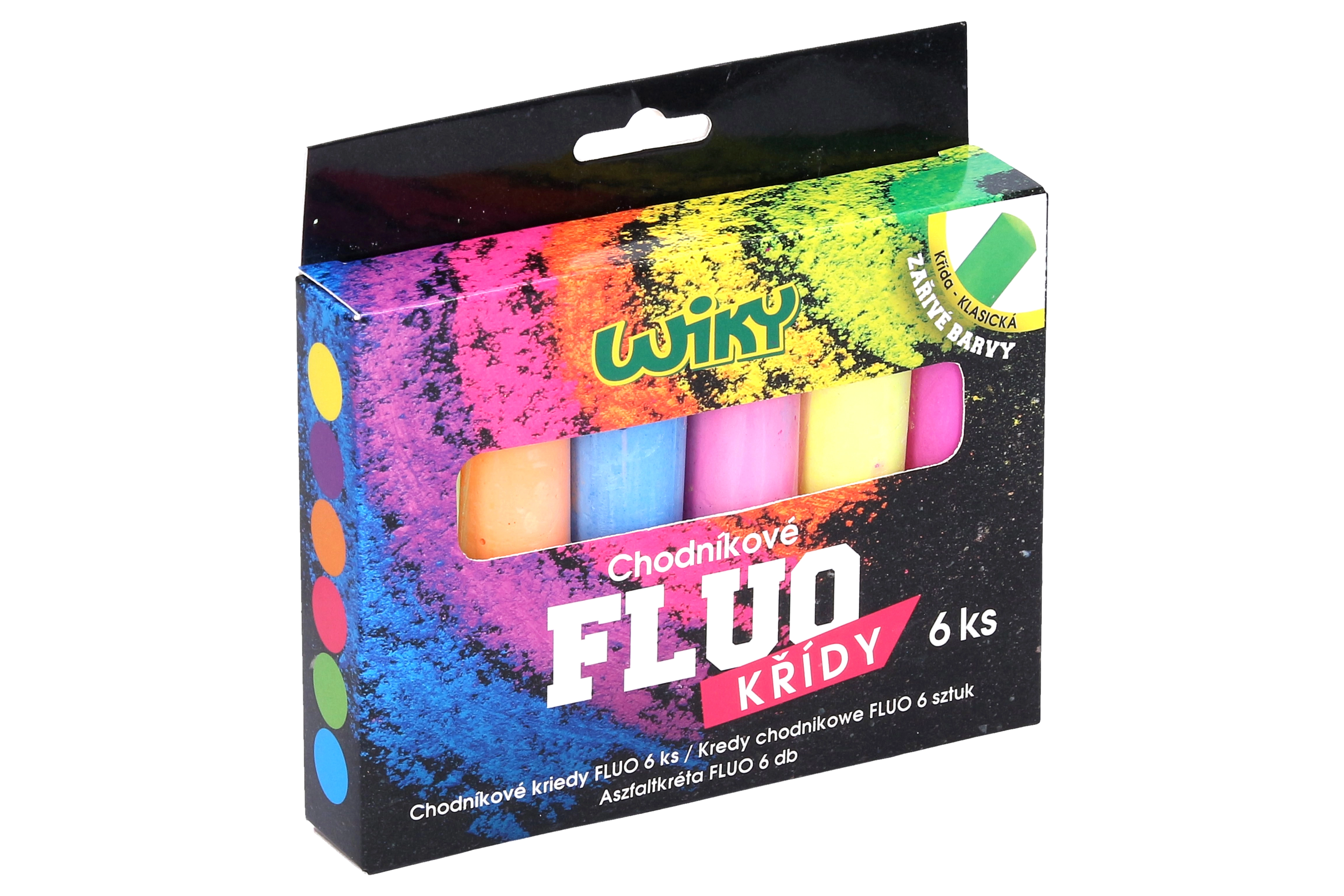 Kurkite spalvingus piešinius su mūsų šešiomis fluorescencinėmis šaligatvio kreidelėmis. Kiekviename rinkinyje rasite įvairias spalvas: geltoną, violetinę, oranžinę, mėlyną, žalią ir rožinę. Šios kreidelės puikiai tinka vaikams ir suaugusiesiems, mėgstantiems piešti ant šaligatvių ir automobilių stovėjimo aikštelių.