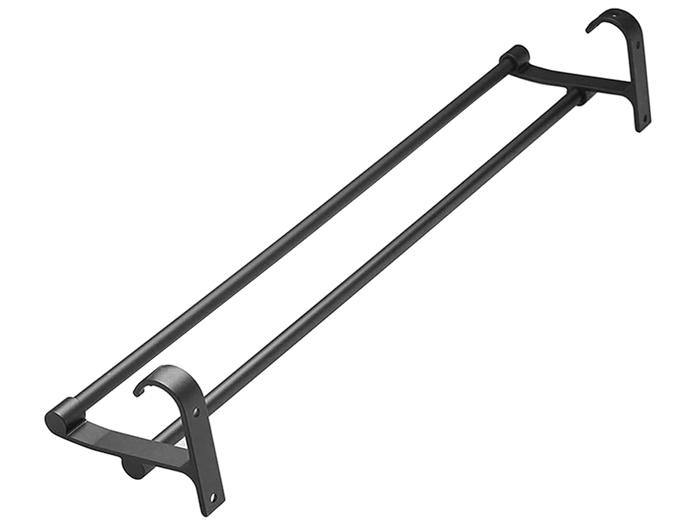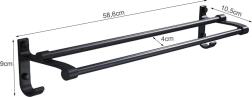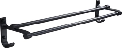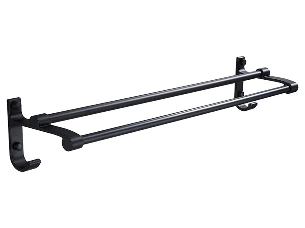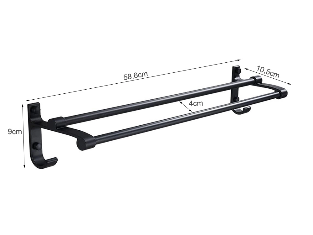 Elegantiškas dvigubas rankšluosčių laikiklis yra puikus pasirinkimas tiek moderniems, tiek klasikiniams vonios kambariams. Dvi lygiagrečios juostos suteikia daug vietos rankšluosčiams džiovinti ir tvarkingai laikyti, o šoniniai kabliukai prideda papildomos vietos aksesuarams. Patvari metalinė konstrukcija juodos spalvos užtikrina ilgaamžiškumą ir lengvą priežiūrą.