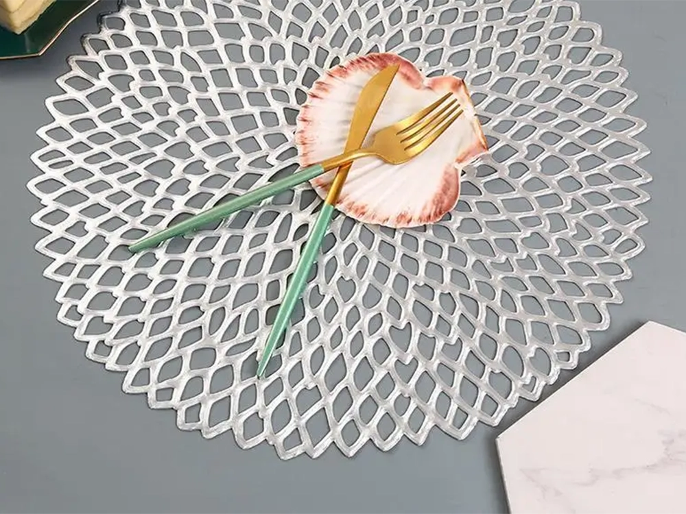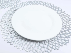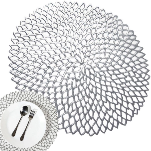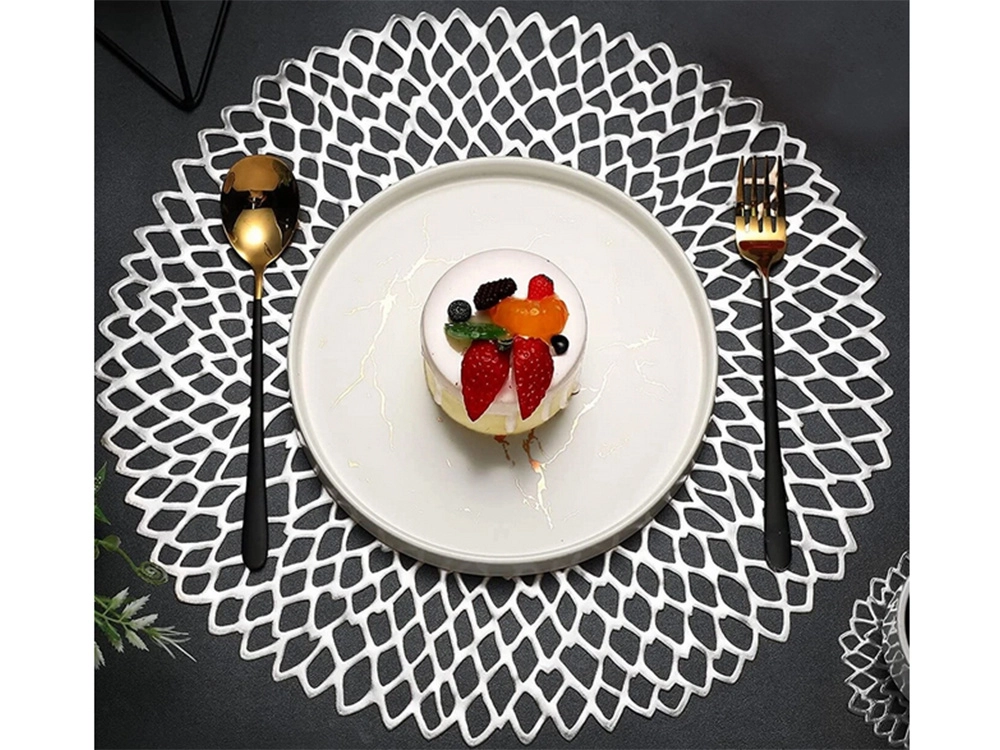 Stilingas ažūrinis padėkliukas elegantiškos sidabrinės spalvos saugo stalo paviršių nuo įbrėžimų ir dėmių, o kartu yra ryškus dekoratyvus akcentas. Dėl patvaraus plastiko jis lengvas, praktiškas ir atsparus vandeniui, todėl puikiai tinka kasdieniam naudojimui ir šventinėms progoms.