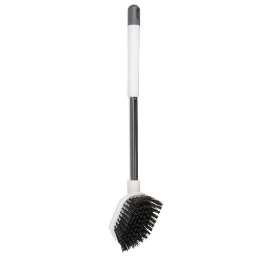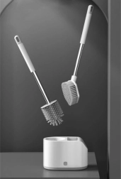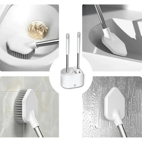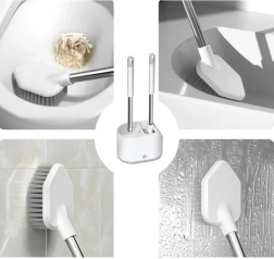 Apvali TPR galvutė yra elastinga ir švelni keramikai, o plokščia trikampė PP galvutė su aštria smaile išvalo sunkiai pasiekiamus kampus ir kraštus po klozeto briauna.