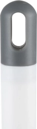 Komplekte yra uždara lašėjimo talpa su patogiu mygtuku higieniškam vandens išleidimui ir lipnus sieninis laikiklis, taupantis grindų vietą. Metalinės nerūdijančio plieno rankenos yra patvarios ir lengvai prižiūrimos, balta/pilka spalvų derinys tinka bet kuriam vonios kambariui.