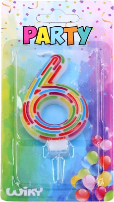 Stilinga torto žvakė skaičiaus 6 formos su brūkšnelių dekoru suteiks šventei šarmo ir paryškins amžių ar jubiliejų. Dėl integruoto vaško stovelio žvakė lengvai ir tvirtai įstatoma į tortą. Žvakės aukštis be laikiklio yra apie 6 cm. Ideali gimtadieniams, sukaktims ir teminiams vakarėliams.