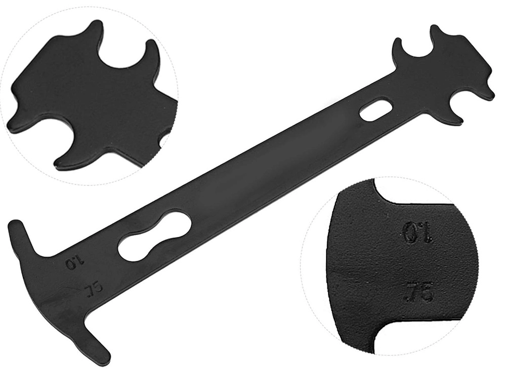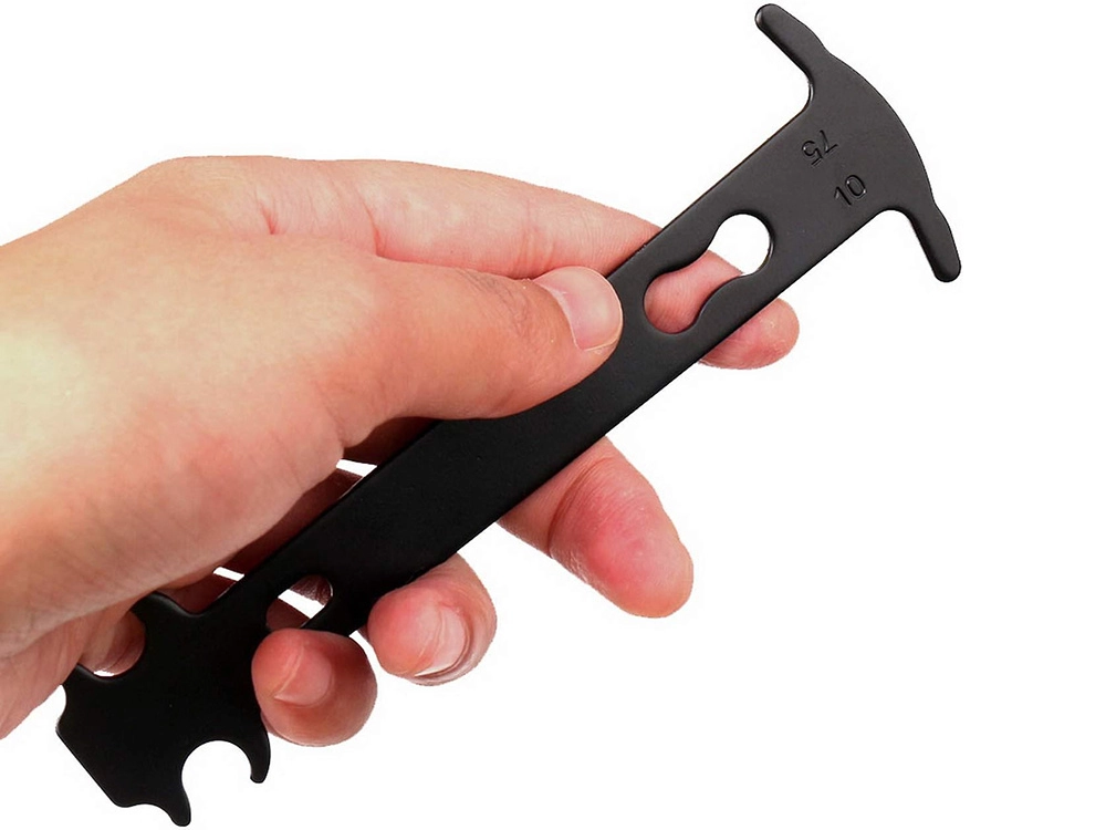 Šis metalinis grandinės matuoklis yra būtinas įrankis kasdienei ir sezoninei dviračio priežiūrai. Dėl aiškiai pažymėtų reikšmių 0,75 (grandinei artėjant prie keitimo) ir 1,0 (grandinę būtina keisti nedelsiant) greitai įvertinsite nusidėvėjimo būklę ir apsaugosite pavarą nuo priešlaikinio susidėvėjimo.