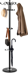 Tvarka prieškambaryje prasideda nuo kokybiškos kabyklos. Šis ModernHome stovas derina patvarią metalinę konstrukciją su sunkiu, apvaliu akmeniniu pagrindu, kuris užtikrina puikų stabilumą net esant pilnam apkrovimui. Dėl laiko patikrintos juodos ir chromuotos apdailos lengvai įsilieja tiek į modernius, tiek į klasikinius interjerus.