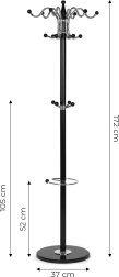 Elegantiška stovima ModernHome kabykla idealiai tinka prieškambariui, biurui ir rūbinei. Ji siūlo stabilią metalinę konstrukciją, sunkią akmeninę bazę, užtikrinančią apsaugą nuo apvirtimo, iš viso 16 kabliukų paltams, krepšiams ir vaikų striukėms bei praktišką spiralę skėčiams. Modernus dizainas puikiai dera su bet kuriu interjeru.
