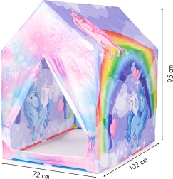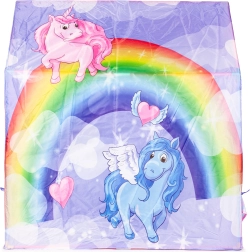 Sukurkite vaikams jų pačių prieglobstį fantazijai ir pramogoms. IPLAY žaidimų palapinė su vaivorykštės ir vienaragių motyvais siūlo patogią ir privačią vietą skaitymui, žaidimams ir poilsiui. Dėl lengvos ir stabilios konstrukcijos ją lengvai pastatysite svetainėje, vaikų kambaryje ar terasoje.