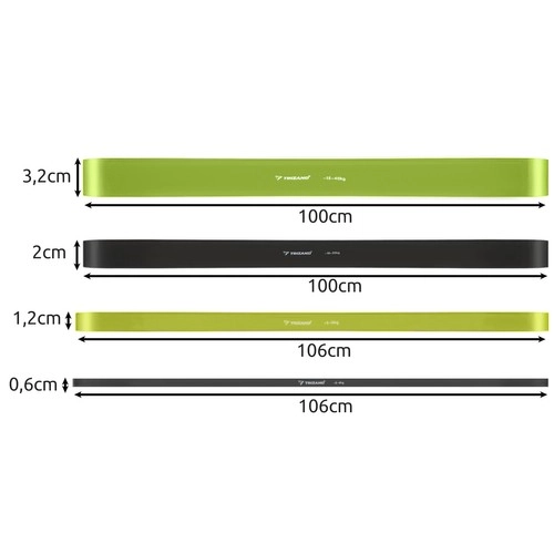 Universalios TRIZAND power band kilpinės gumos idealiai tinka namų treniruotėms, sporto salei ir treniruotėms lauke. Keturi skirtingo pločio kilpos apima pasipriešinimą nuo 2 iki 40 kg, todėl lengvai atliksite raumenų aktyvaciją, asistuotus prisitraukimus, pritūpimus, tempimus ir reabilitacinius pratimus. Storas lateksas yra atsparus plyšimui ir dilimui, o patogus sukibimas užtikrina saugų naudojimą.