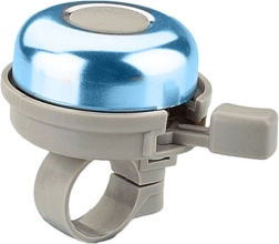 Šis metalinis dviračio skambutis yra patikimas saugumo priedas, didinantis jūsų matomumą ir girdimumą eisme. Kompaktiškas dizainas su nykščio svirtimi leidžia patogiai valdyti važiuojant, o klasikinė mėlyna spalva tinka daugumai dviračių ir paspirtukų.