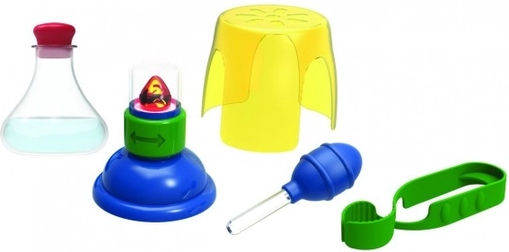 Komplekte yra iš anksto pripildytas ir užplombuotas kolbutis, kuris imituoja šildymo procesą. Be to, rinkinys apima naudotojo vadovą su eksperimentais, kad vaikai galėtų žingsnis po žingsnio sekti instrukcijas. Taip pat rasite priedus, tokius kaip pipetė, spaustukas ir apsauginiai akiniai tikroviškai patirčiai.