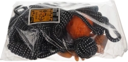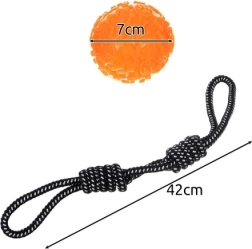 Tvirta juodai balta virvė ir faktūrinė oranžinė guma atlaiko intensyvų naudojimą ir padeda valyti dantis bei masažuoti dantenas žaidimo metu.