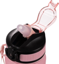 Dėl išimamo šiaudelio ir minkšto silikoninio antgalio patogiai geriate viena ranka nepakreipdami. Atverčiamas dangtelis su saugos fiksatoriumi ir silikoninis sandarinimas apsaugo nuo netyčinio atsidarymo ir pratekėjimo krepšyje. Matinis paviršius ir lengvas, patvarus PP plastikas lengvai prižiūrimi; butelis tinkamas temperatūroms -20 iki 80 °C.