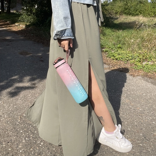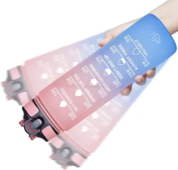 Rūpinkitės hidratacija visą dieną. Butelis derina 1 l talpą su skale ml (iki 1000 ml) ir oz (iki 32 oz) bei laiko grafiku nuo ryto iki vakaro, tad tiksliai žinosite, kiek ir kada gerti. Motyvuojančios frazės palaikys darbe, sporte ir kelionėse.