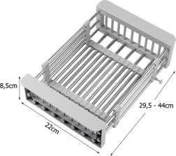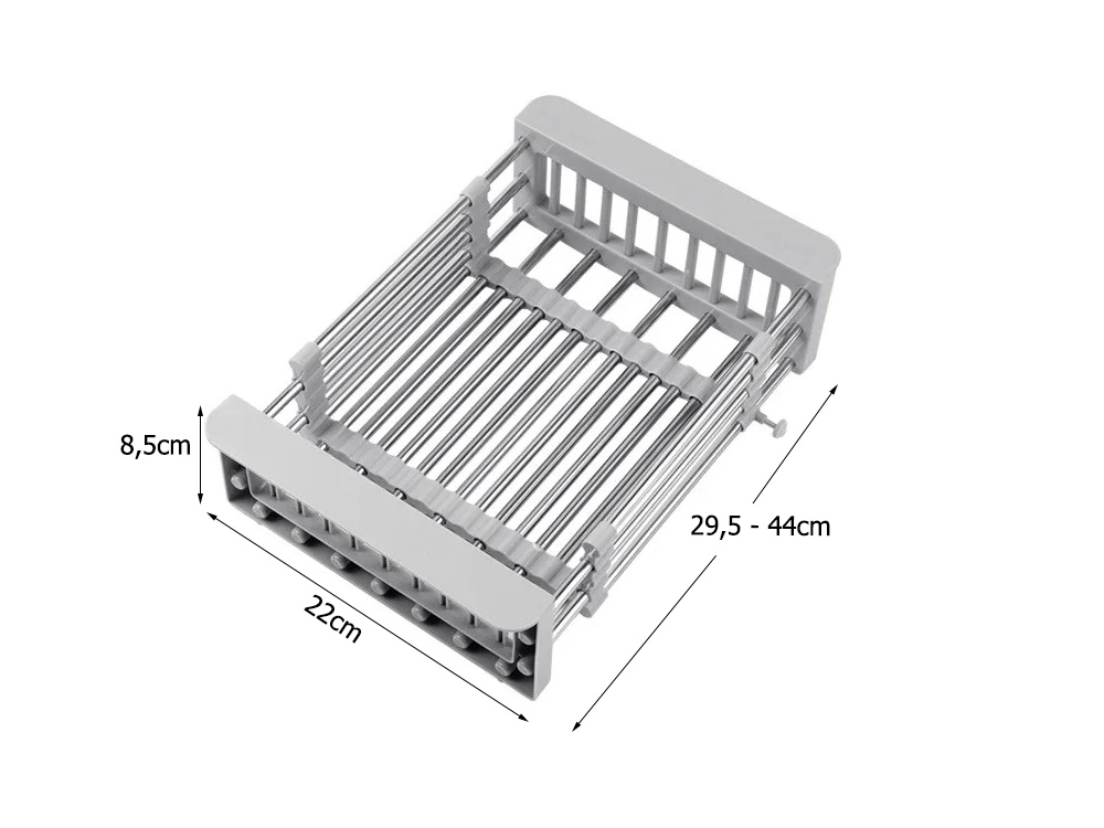 Praktiškas teleskopinis indų džiovintuvas kriauklei, kuris sklandžiai prisitaiko prie 29,5–44 cm pločio. Idealiai tinka vaisių ir daržovių plovimui, indų varvėjimui ir vietos taupymui ant virtuvinio stalviršio. Patvari metalo ir plastiko kombinacija, lengva priežiūra ir moderni pilka spalva.