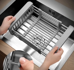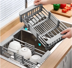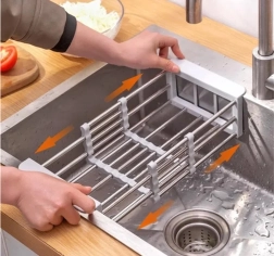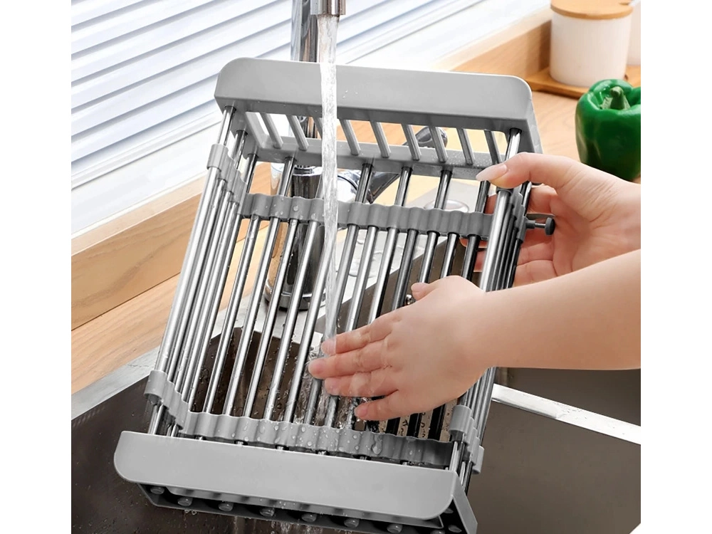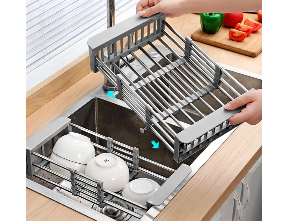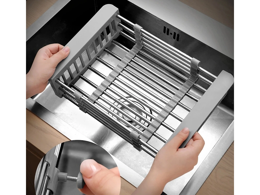 Šis išplečiamas džiovintuvas per kriauklę praplečia darbo zoną ir palengvina kasdienius virtuvės darbus. Dėl teleskopinės konstrukcijos jis prisitaiko prie daugumos kriauklių ir leidžia patogiai skalauti ir džiovinti vaisius, daržoves bei indus tiesiai virš kriauklės vonelės.