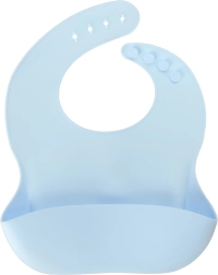 Minkštas silikoninis seilinukas su reguliuojamu užsegimu ir gilia kišene patikimai sulaiko trupinius ir skysčius, apsaugodamas drabužius kiekvieno valgymo metu.