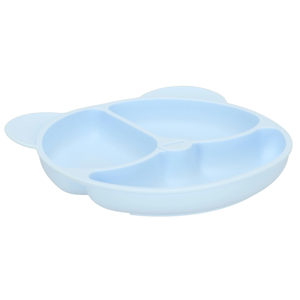 Iš maistinio silikono pagaminta lėkštė su keliomis pertvaromis leidžia patogiai ir aiškiai patiekti maistą bei skatina savarankišką valgymą. Žaisminga meškučio forma sudomina vaikus.