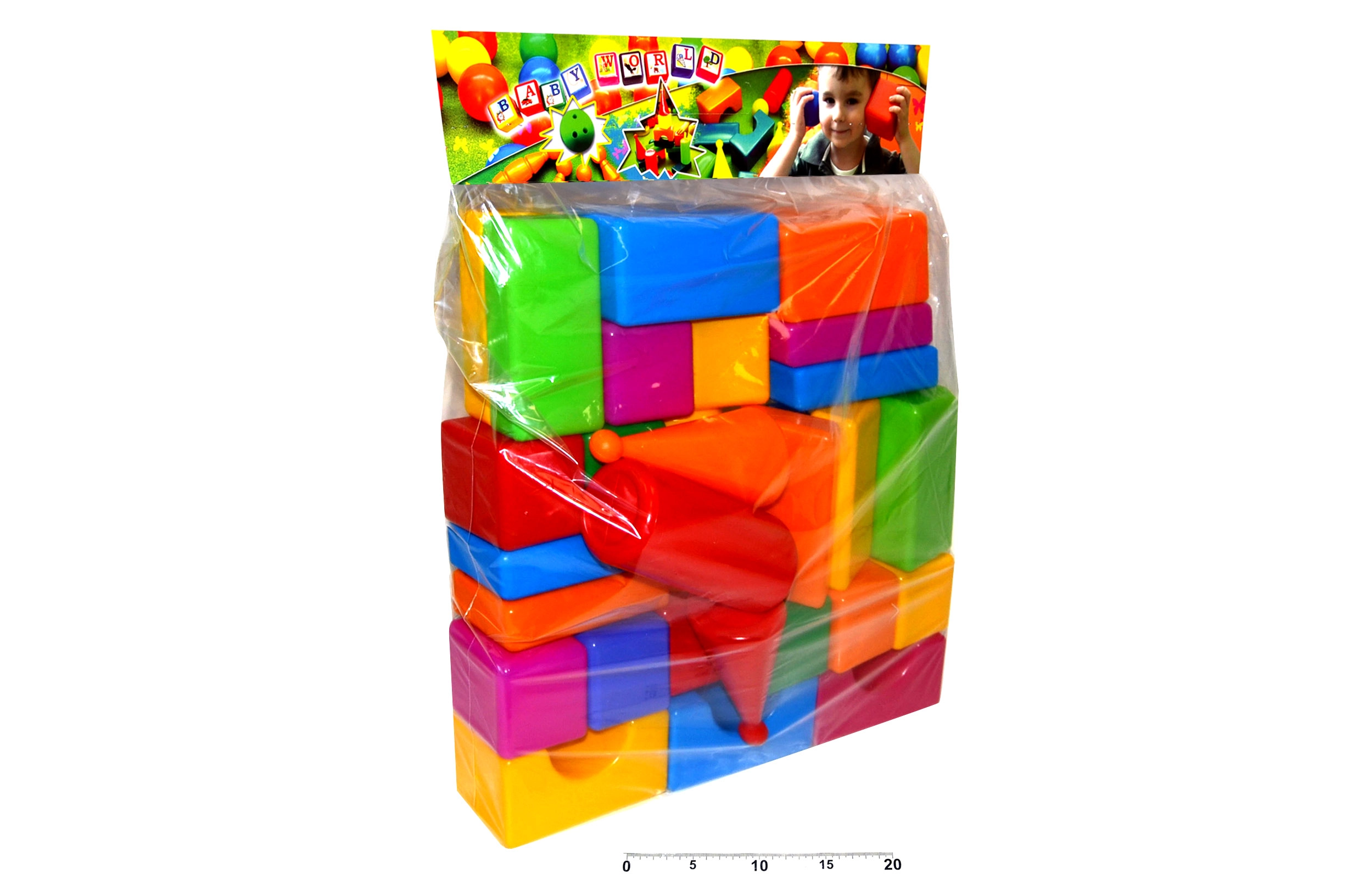 - 30 minkštų ir lengvai valdomų plastikinių kaladėlių