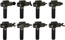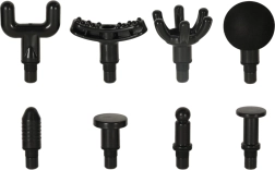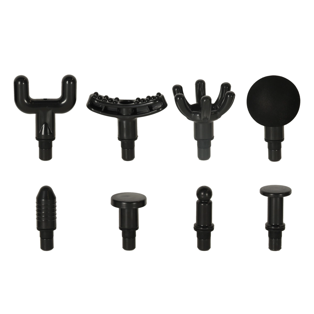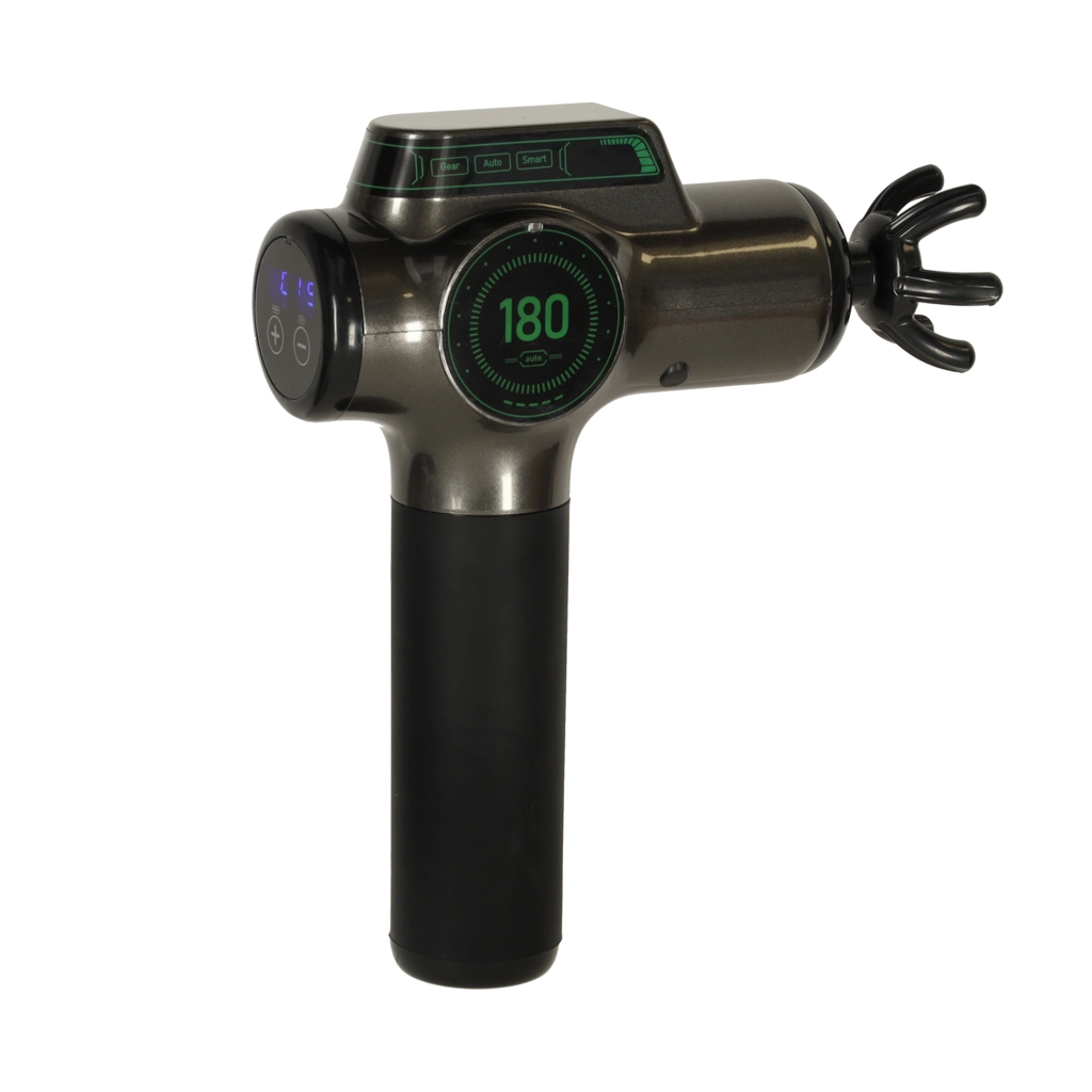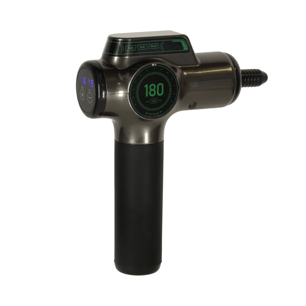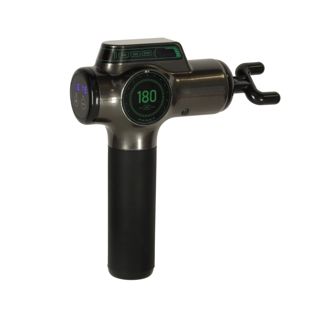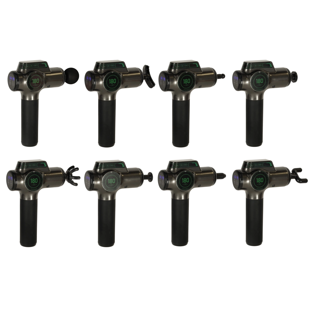 Jame yra aštuoni keičiami antgaliai, leidžiantys individualiai pritaikyti masažą pagal jūsų poreikius. LED ekranas rodo įkrovos lygį ir nustatytą masažo intensyvumą, suteikdamas tikslią kontrolę – nuo švelnaus atpalaiduojančio masažo iki gilios raumenų terapijos.