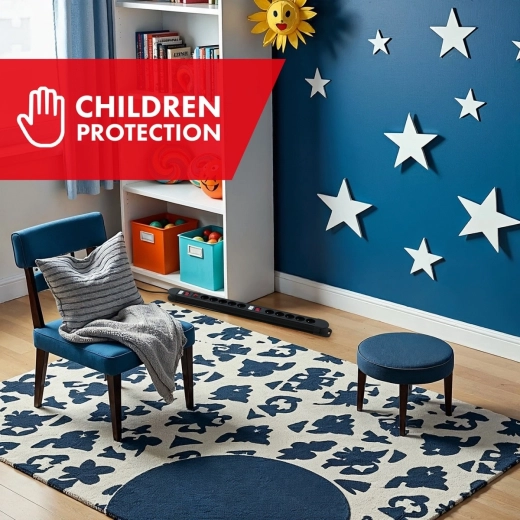 Integruotas automatinis jungiklis saugo nuo perkrovos ir trumpojo jungimo, o vaikiška apsauga neleidžia į lizdus įkišti pašalinių daiktų.
