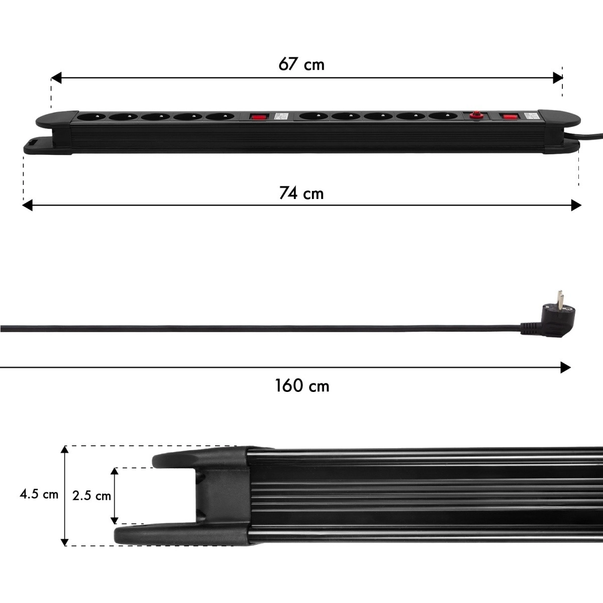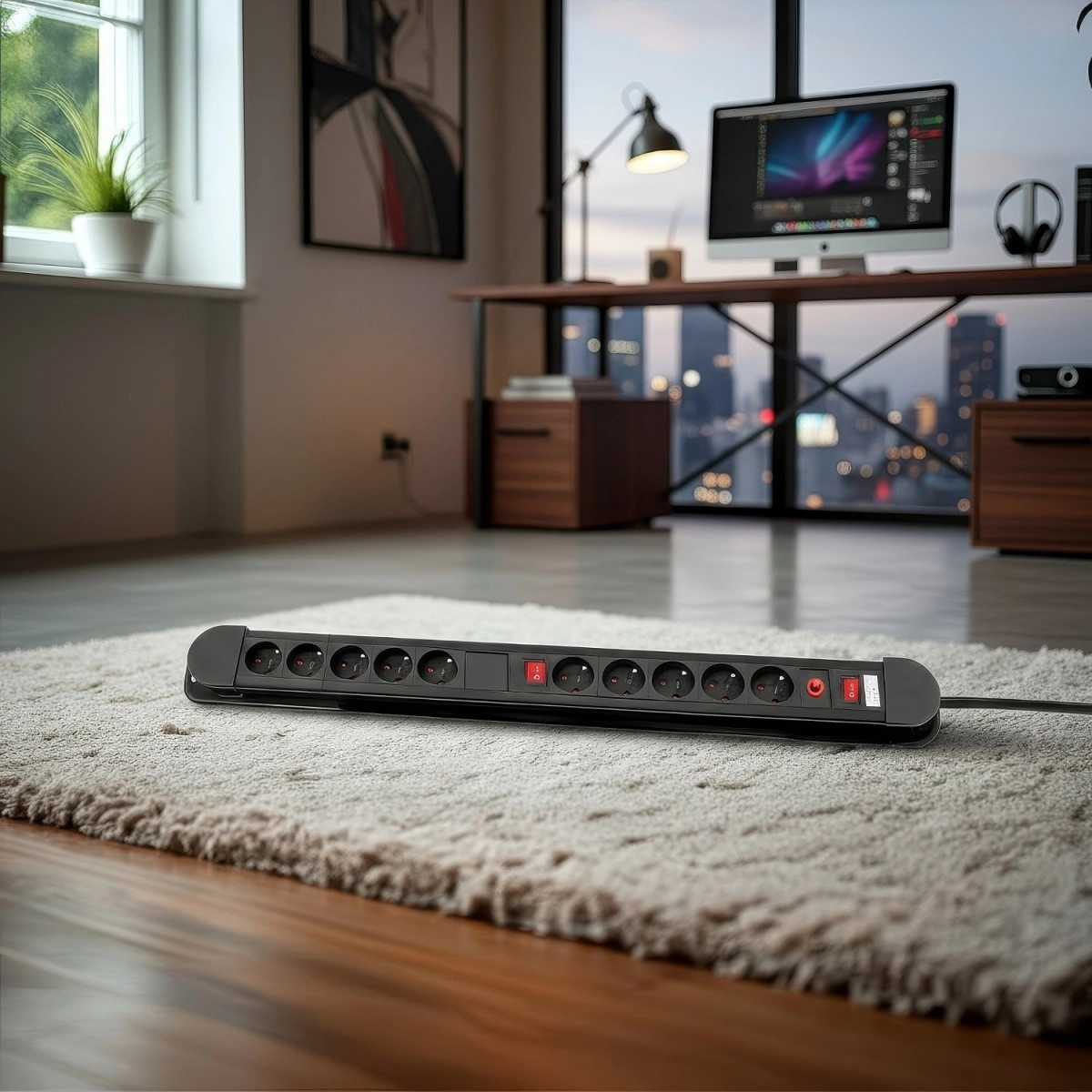 Dėl vaikiškos apsaugos lizdai yra saugūs ir šeimos aplinkoje. Kompaktiškas, pailgas korpusas su iš anksto paruoštomis angomis leidžia lengvai montuoti po stalu arba ant sienos. Maksimali galia 3680 W ir 1,5 m kabelis užtikrina patikimą darbą namuose, biure ir dirbtuvėse.