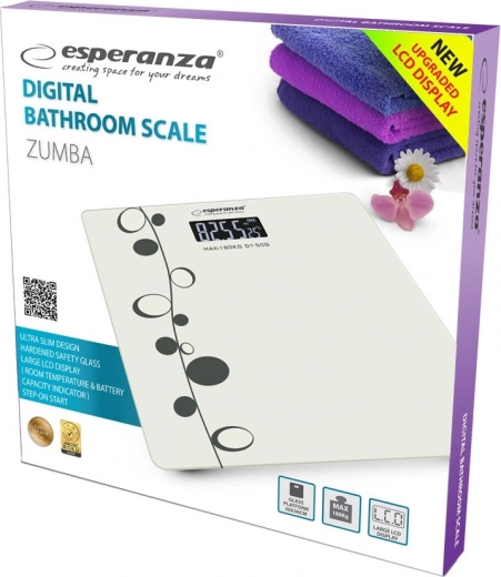 Itin plonos elektroninės svarstyklės ESPERANZA ZUMBA siūlo tikslų matavimą, elegantišką dizainą ir paprastą valdymą. Dėl patvarios stiklinės platformos, didelio LCD ekrano ir funkcijų, tokių kaip automatinis išsijungimas bei perkrovos ir žemos baterijos indikacija, jos idealiai tinka kasdieniam svorio stebėjimui namuose ir sporto aplinkoje.