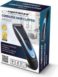 Belaidis plaukų kirpimo aparatas ESPERANZA Apollo greitam ir patogiam kirpimui namuose. Siūlo net 24 kirpimo ilgius nuo 1,5–24 mm, ergonomišką formą ir paprastą valdymą. Sutaupykite laiko ir pinigų bei susikurkite precizišką šukuoseną ar ūsų ir barzdos tvarkymą bet kada.