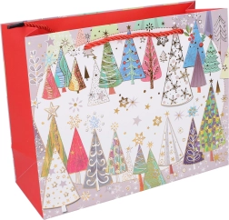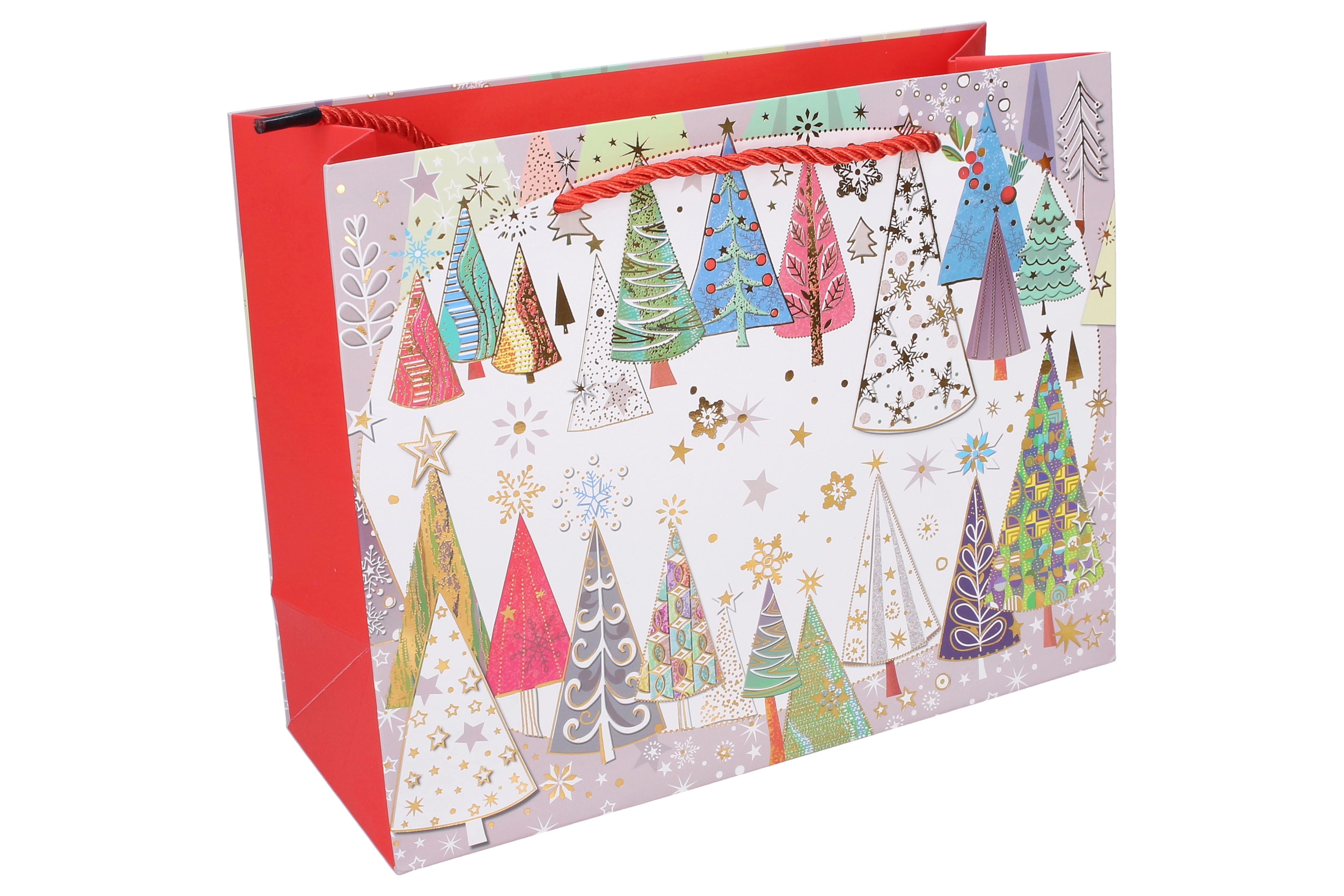 Šis kalėdinis dovanų maišelis – puikus pasirinkimas elegantiškam ir greitam dovanų įpakavimui. Išmatavimai 24,5 × 19,5 × 9,5 cm – praktiškas dydis mažesniems daiktams, žvakėms, aksesuarams ar kosmetikos rinkiniams. Keturi skirtingi šventiniai motyvai suteikia kiekvienai dovanai išskirtinę išvaizdą.