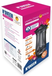 Galinga vabzdžių gaudyklė lempa, 18 W galia, su IPX4 apsauga, tinkama naudoti viduje ir lauke. UV-A 365 nm šviesos ir aukštos įtampos grotelės derinys veiksmingai naikina uodus, muses ir vaisines museles. Patvari metalinė ir nedegi ABS konstrukcija, tylus veikimas, be chemikalų ir lengva priežiūra dėl nuimamos talpos.