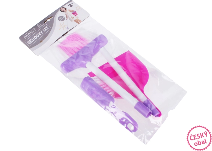 Praktiškas vaikiškas valymo rinkinys susideda iš 3 dalių – semtuvėlio, šepetėlio ir sulankstomo šluotos kotelio su šluota. Pagaminta iš patvaraus plastiko rožinės ir baltos spalvos, idealiai tinka namų žaidimams ir smulkiosios motorikos lavinimui. Sulankstoma šluota lengvai telpa į mažesnę žaislų dėžę.